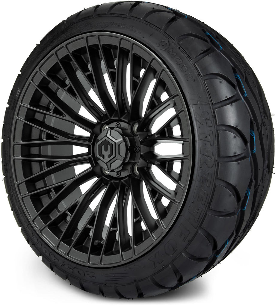 MODZ® Reaper Titanium Gunmetal 14" Golf Cart Wheel Combo - Street/Low Profile