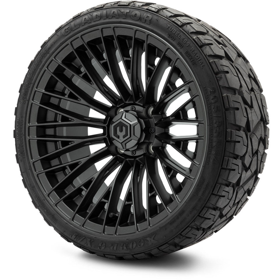 Whether you're upgrading for aesthetics or performance, the MODZ® 14" Reaper Titanium Gunmetal - Low Profile Tires and Wheels Combo is the perfect choice for a modern and stylish golf cart transformation.
